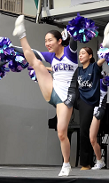真ん中のチア女子のスカートのスリットから、中身がチラっと。
