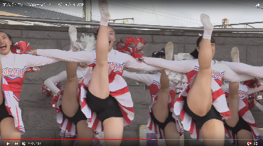 左のチア女子が大胆にスカートの中を見せてくれます。