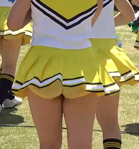 右側のチア女子のスカートが思いっきりめくれて中身が見えています。