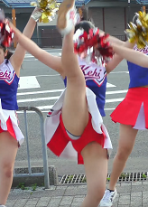 その後ろのチア女子の股間から、インナーがチラしています。素晴らしい。