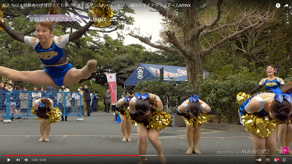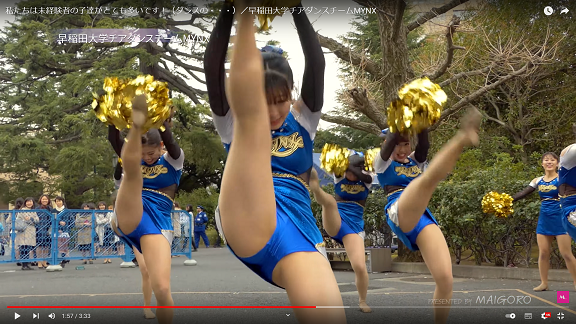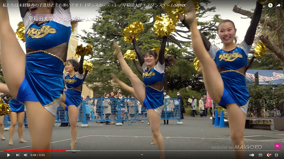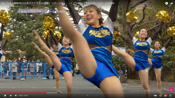今回は、「私たちは未経験者の子達がとても多いです!(ダンスの・・・)/早稲田大学チアダンスチームMYNX」の動画を紹介していきたいと思います。