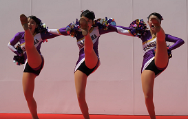 中心のチア女子が腕を廻す際の、胸感が素晴らしい。