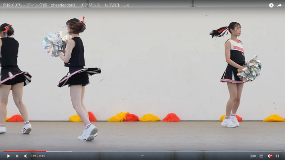 赤い奥に、黒い布がチラしているチア女子がちらほら。