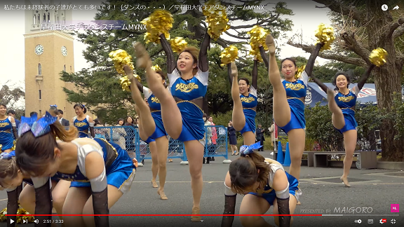 左から二番目のチア女子の股間の布の食い込み感がいいですね。