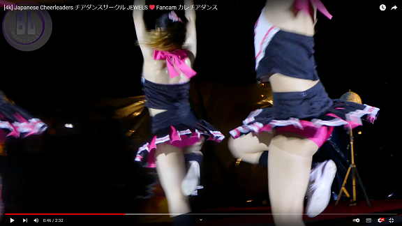 右のチア女子のパックリ股間が素晴らしい。
