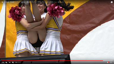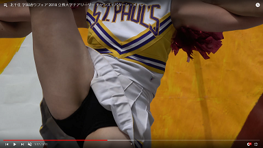 右側のチア女子、スカートが捲れ上がってスパッツが丸見え。