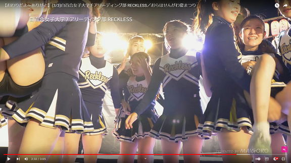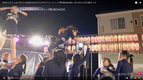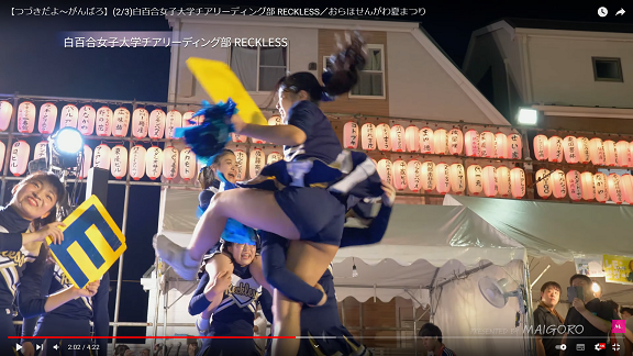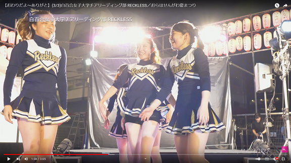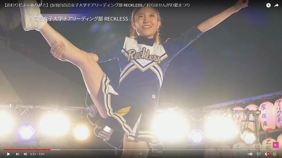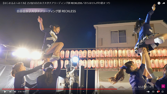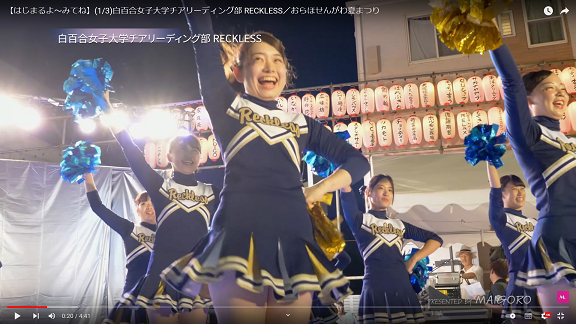 今回は、「【はじまるよ〜みてね】(1/3)白百合女子大学チアリーディング部 RECKLESS/おらほせんがわ夏まつり」の動画を紹介していきたいと思います。